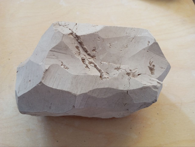 Каолиновая глина светло-голубой оттенка, средней плотности.